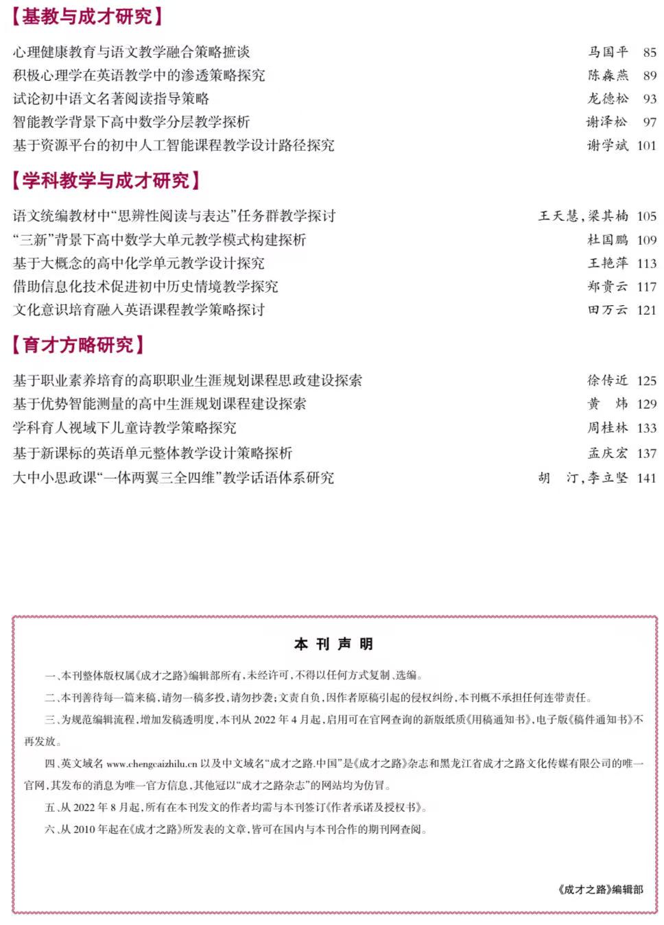 成才之路杂志版权声明